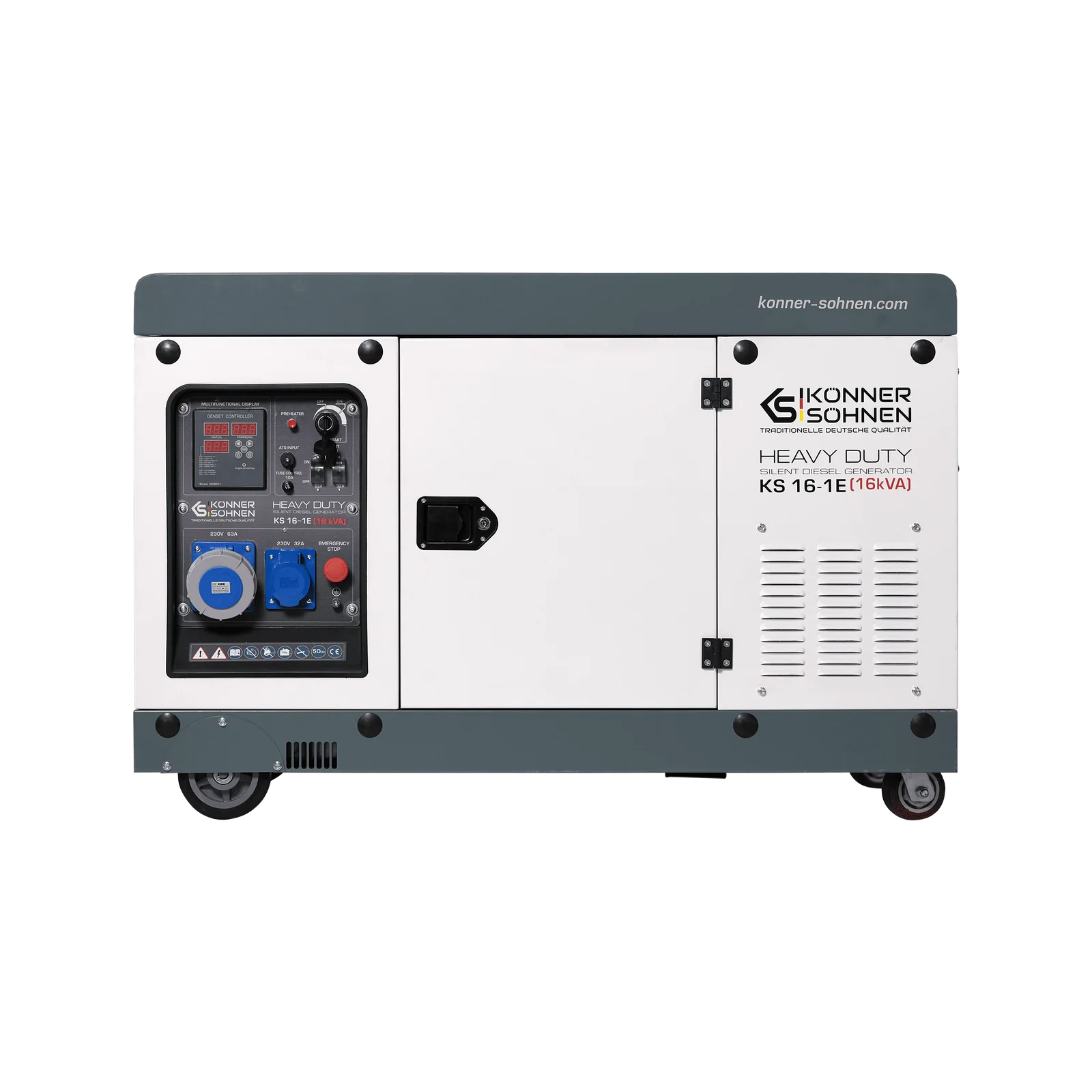 Der KS 16-1E von Könner & Söhnen ist ein leistungsstarker 2-Zylinder-Dieselgenerator mit 15 kVA Nennleistung. Er eignet sich ideal für den Einsatz in Wohn- und Gewerbeobjekten als Notstromquelle und bietet eine sichere Versorgung auch bei Stromausfällen.