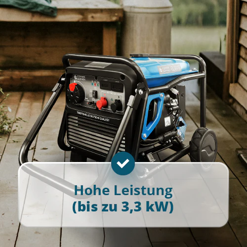 Dank Transportset mit Rädern und klappbarem Griff lässt sich der Generator bequem bewegen und flexibel einsetzen. Dadurch eignet er sich sowohl für stationäre als auch mobile Energiesysteme.