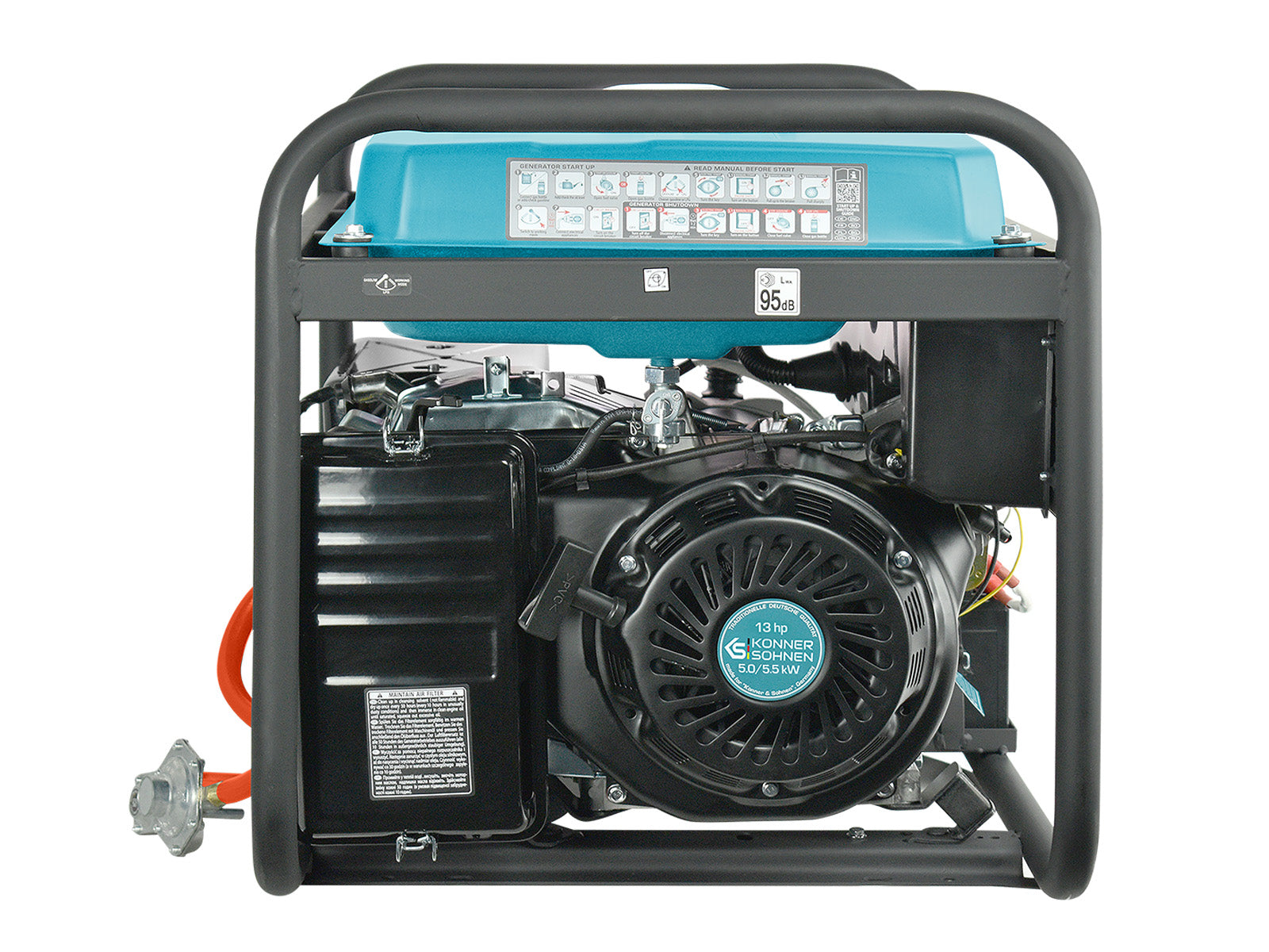 Der KS 7000E G LPG/Benzin-Generator aus der DUAL FUEL-Serie von Könner & Söhnen bietet maximale Flexibilität bei der Kraftstoffwahl. Nutzer können jederzeit zwischen Benzin und Flüssiggas (Propan oder Butan) wechseln und damit die Betriebskosten deutlich senken. Insbesondere der LPG-Betrieb sorgt für eine gleichmäßige Motorleistung, weniger Vibrationen und eine längere Lebensdauer des Motors. Die umweltfreundliche Verbrennung reduziert zudem die Schadstoffemissionen spürbar.